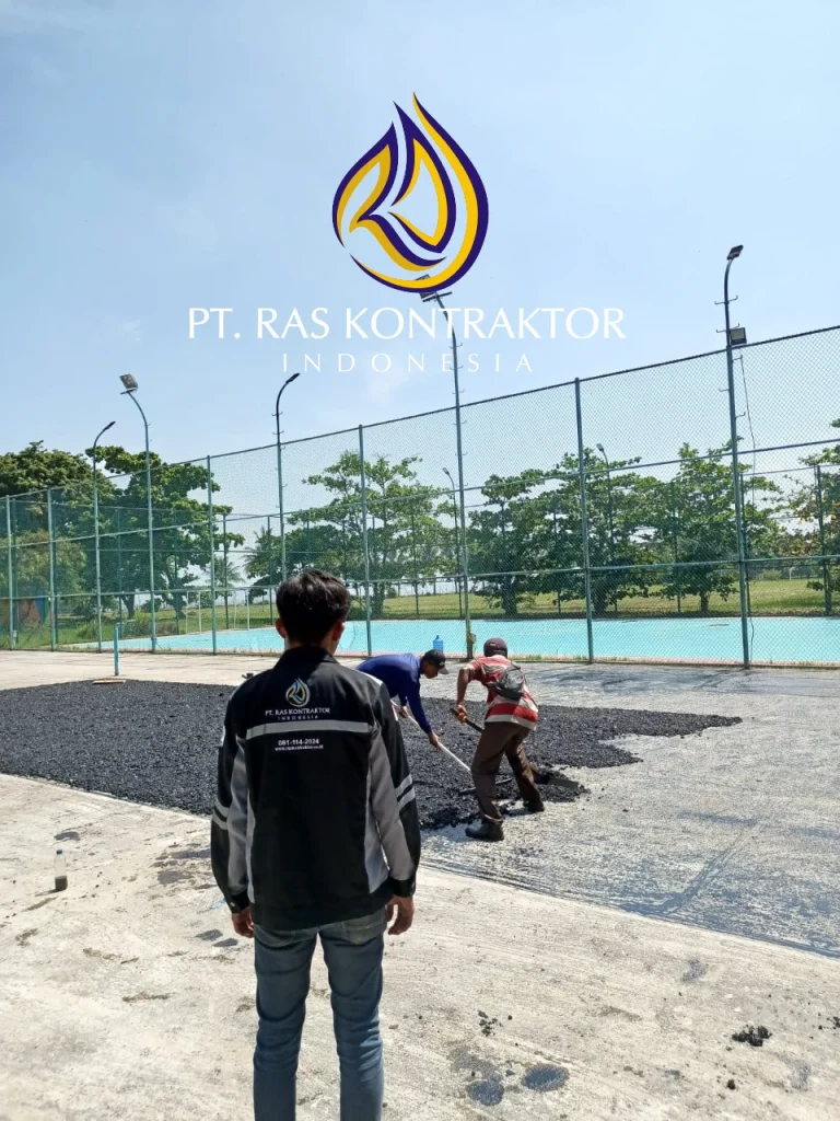 - Lapangan Tenis – Pengaspalan presisi untuk lapangan tenis, memberikan permukaan yang halus dan responsif untuk permainan optimal.