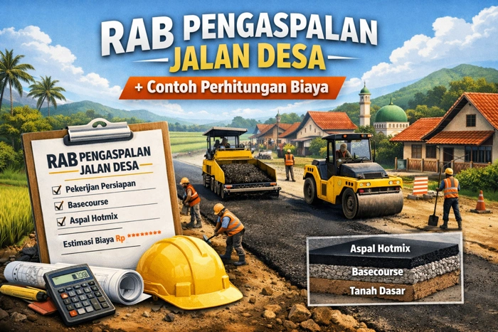 RAB pengaspalan jalan desa adalah perhitungan anggaran biaya yang digunakan untuk menentukan total biaya pembangunan jalan aspal berdasarkan volume pekerjaan, kebutuhan material, tenaga kerja, alat berat, serta biaya operasional proyek.